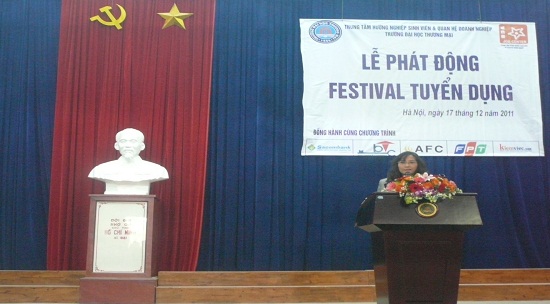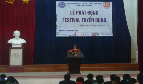 Sáng ngày 17/12/2011 tại Hội trường H1 – Trường Đại Học Thương Mại Hà Nội, Trung tâm HNSV & QHDN tổ chức trọng thể: “Lễ phát động Festival tuyển dụng 2012”.